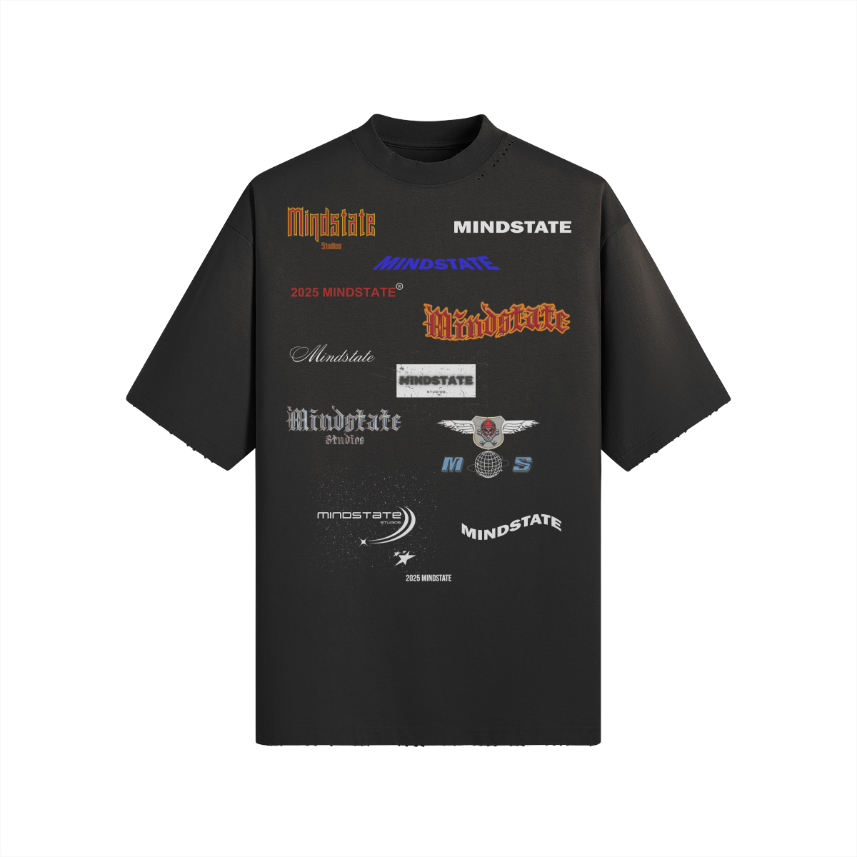 This Mindstate Logos Tee is Crafted from breathable cotton using eco-friendly reactive dyeing, this oversized tee offers a relaxed fit that exudes comfort and style. Featuring a washed effect and a vertical tonal gradient for a one-of-a-kind look, the distressed cuffs, collar, and hem add a touch of edgy charm. Available in four curated color options that embody a vintage aesthetic.